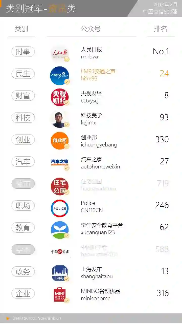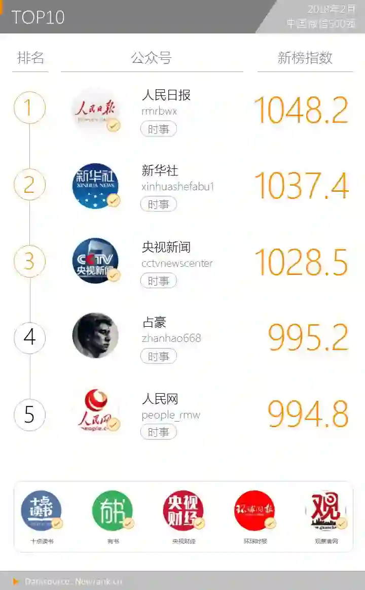 请认准由新榜(newrank.cn)认证出品的中国微信500强月榜、年榜。