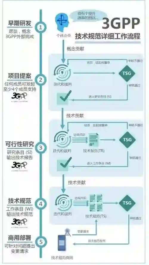 3GPP工作组并不制定标准,而是提供技术规范(TS)和技术报告(TR),并由TSG批准,一旦TSG批准了,就会提交到组织的成员,在进行各自的标准化处理流程。