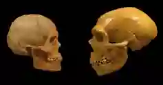 ○ 现代人类头骨化石(左)和尼安德特人头骨化石(右)。| 图片来源:Penny Spikins
