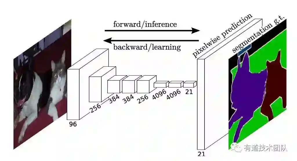全卷积网络 (FCN) 是 CNN 基础上发展起来的算法。与 CNN 不同,FCN 要解决这样的问题:图像的识别目标不是图像级的标签,而是像素级的标签。例如: