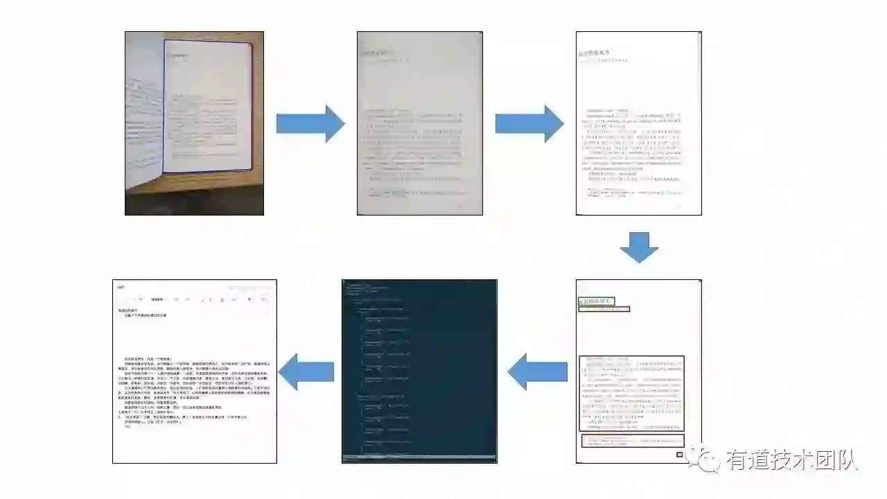 首先介绍一下什么是文档扫描功能。文档扫描功能希望能在用户拍摄的照片中,识别出文档所在的区域,进行拉伸(比例还原),识别出其中的文字,最终得到一张干净的图片或是一篇带有格式的文字版笔记。实现这个功能需要以下这些步骤: