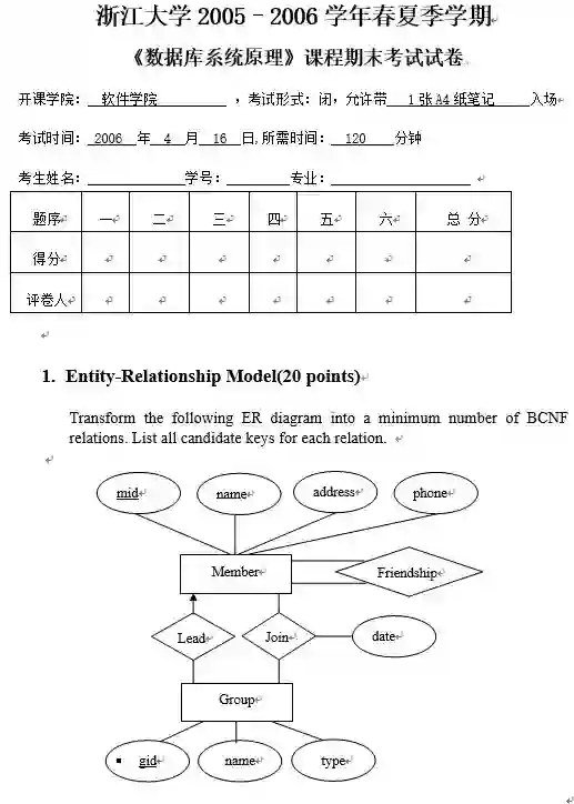 《数据库系统原理》课程期末考试试卷