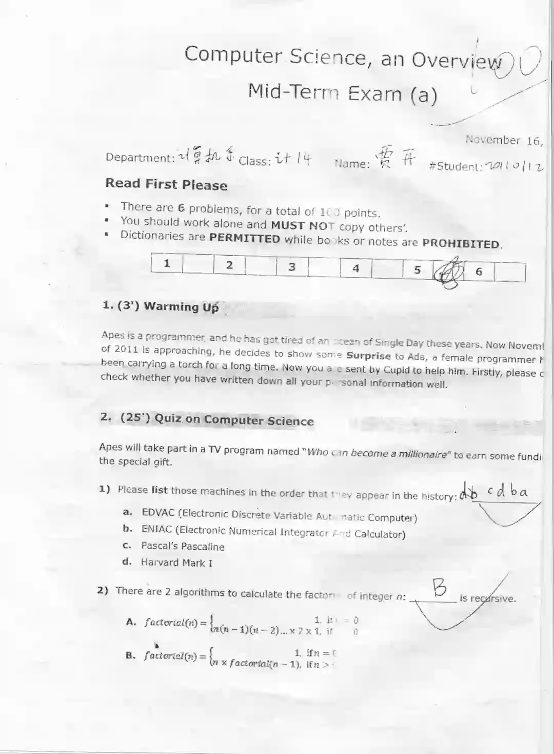 计算机科学导论期末试卷