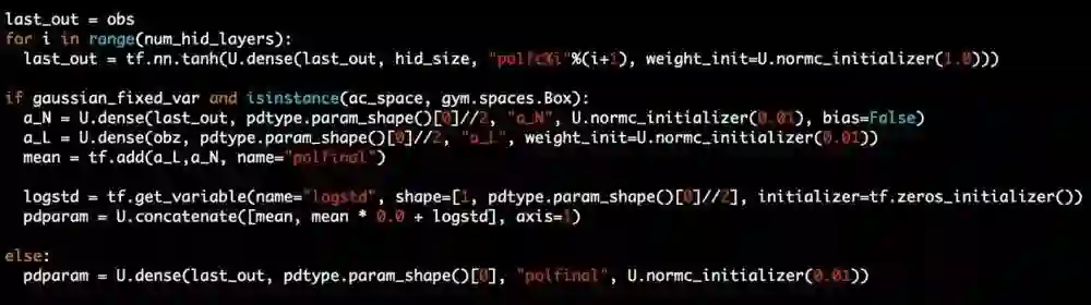 为了简单起见,我不展示MLP的设置。您可以使用任何ML框架(TensorFlow、PyTorch等)来创建MLP模型本身。我们使用OpenAI 作为我们的训练算法和模型: https://github.com/openai/baselines. 。
