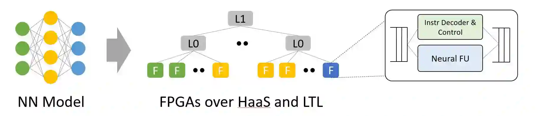 从神经网络模型到 HaaS 上的 FPGA。利用模型内的并行性,模型的不同层、不同特征映射到不同 FPGA。来源:[4]