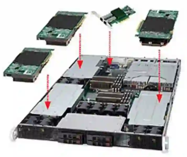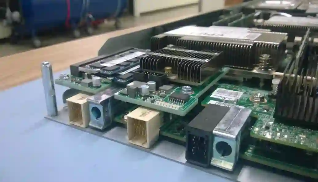 FPGA 与 Open Compute Server 之间的连接与固定。来源:[1]
