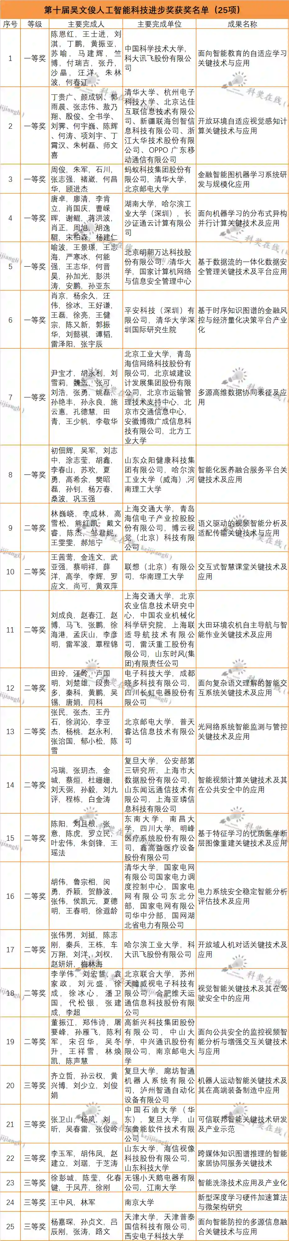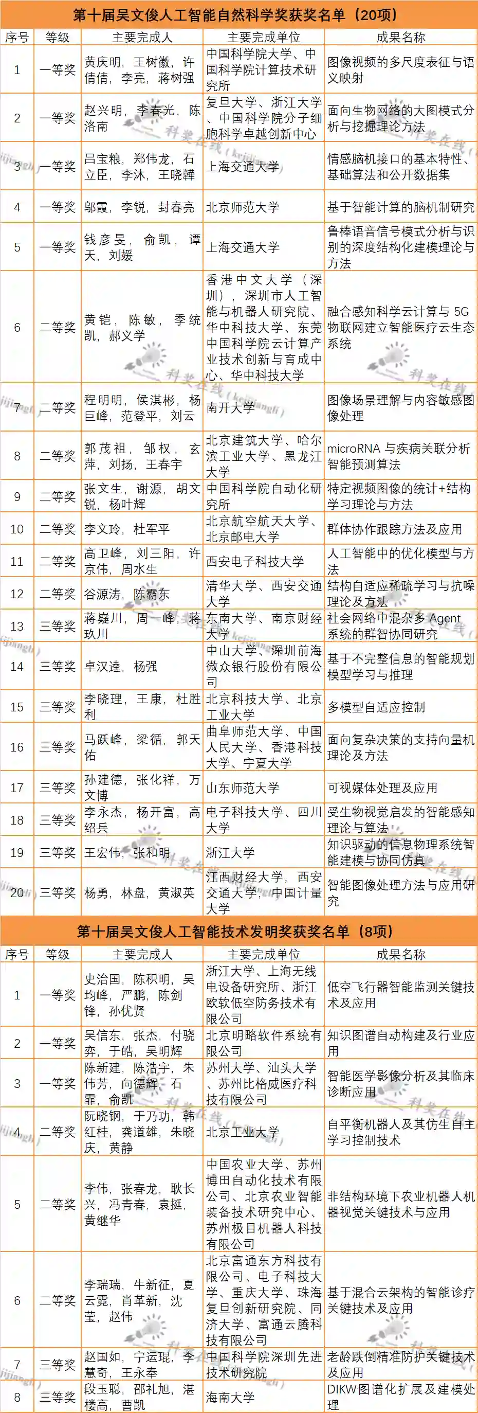 根据《吴文俊人工智能科学技术奖励条例》和《吴文俊人工智能科学技术奖励实施细则》相关规定,经全国各地方人工智能学会、协会及联盟,各高校及科研(院)所,学会各专业委员会及工作委会,各团体会员(企业)单位和两院院士、学会会士等专家学者的提名推荐,通过对提名项目进行网络评审、会议初评和终评答辩,拟对 101 个成果授奖,包括吴文俊人工智能最高成就奖1项,吴文俊人工智能杰出贡献奖 3 项,吴文俊人工智能自然科学奖 20 项,吴文俊人工智能技术发明奖8项,吴文俊人工智能科技进步奖25 项、吴文俊人工智能科技进步奖企业技术创新工程项目 17 项,吴文俊人工智能科技进步奖科普项目 3 项、吴文俊人工智能优秀青年奖 16 项、吴文俊人工智能专项奖芯片项目 8 项。