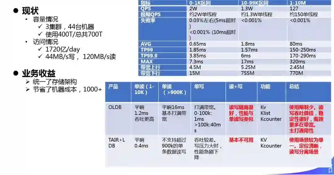① 扩容成本高:大家可以看看这张表格,这是17年底的大致情况。随着机器规模的扩大,以往依赖切库增加分片扩容的处理方式难以为继下去。