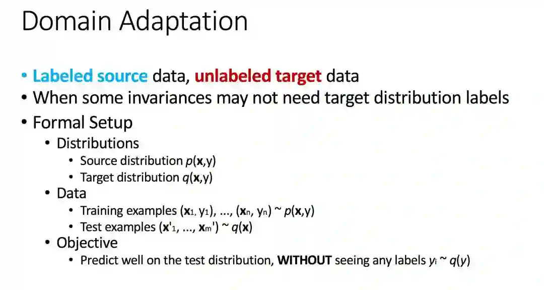 领域自适应,主要是想,在已有的标注数据p(x,y)上学习模型, 然后尝试在另一个分布上q(x,y)上去做应用。