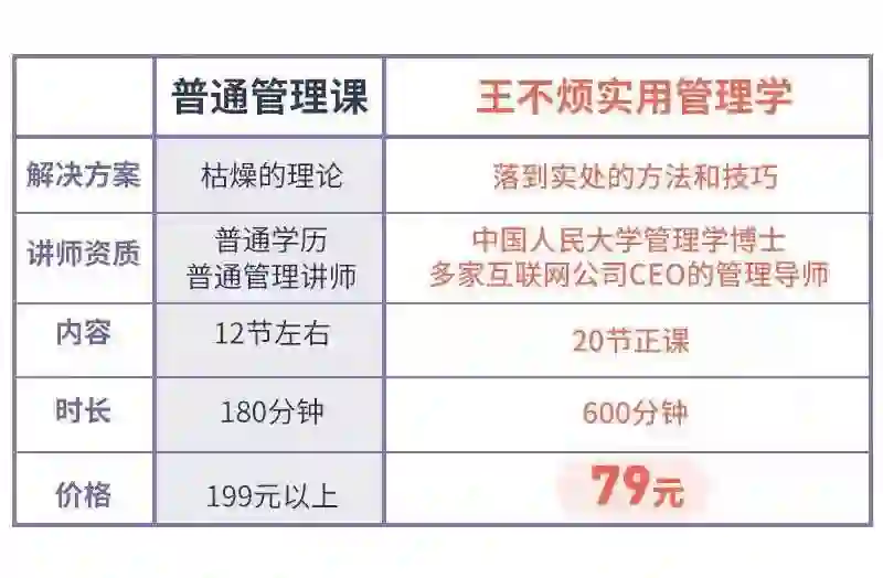 这可能是市面上性价比最高的管理课。现在很多艰深、不实用的管理课,收费都在199元以上,甚至要价上千元。