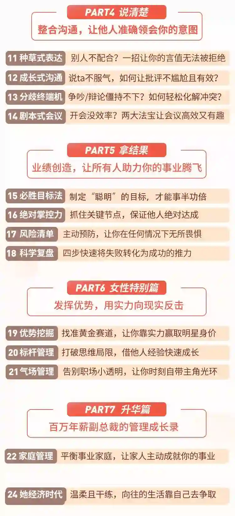 在这门课上,她把多年总结的管理方法,毫无保留地分享给大家。为了让大家有更直观的体会,在这里列出一部分课程内容,供大家参考。