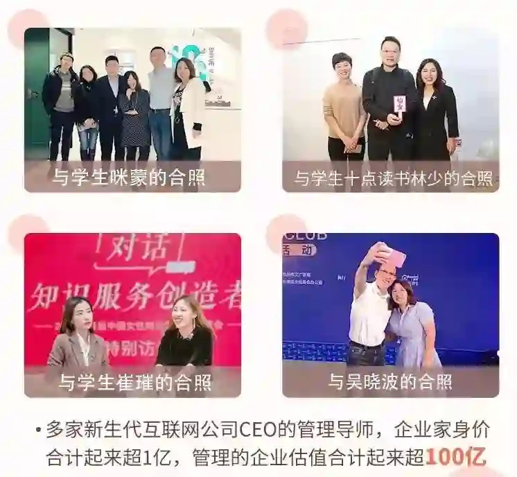 之后,有很多做企业的朋友找我做咨询,也有很多公司邀请我做管理顾问,其中包括十点读书(粉丝超过5000万),Momself(由吴晓波弟子创立)等多家公司。