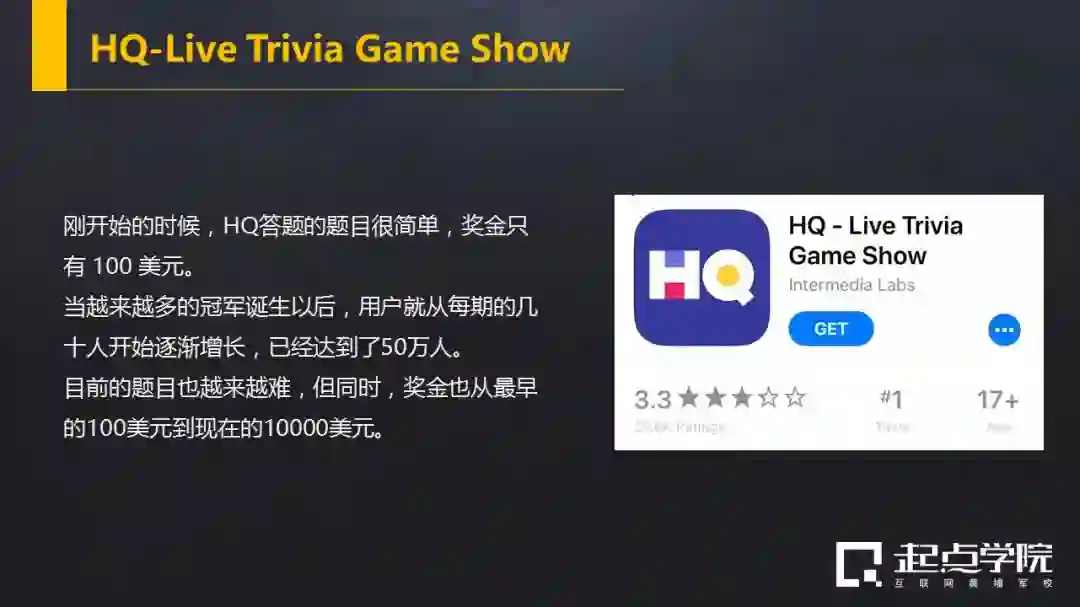 于是,去年的10月,在这个合适的时间点,国外的HQ-Live Trivia Game Show(小知识游戏直播秀)来了。
