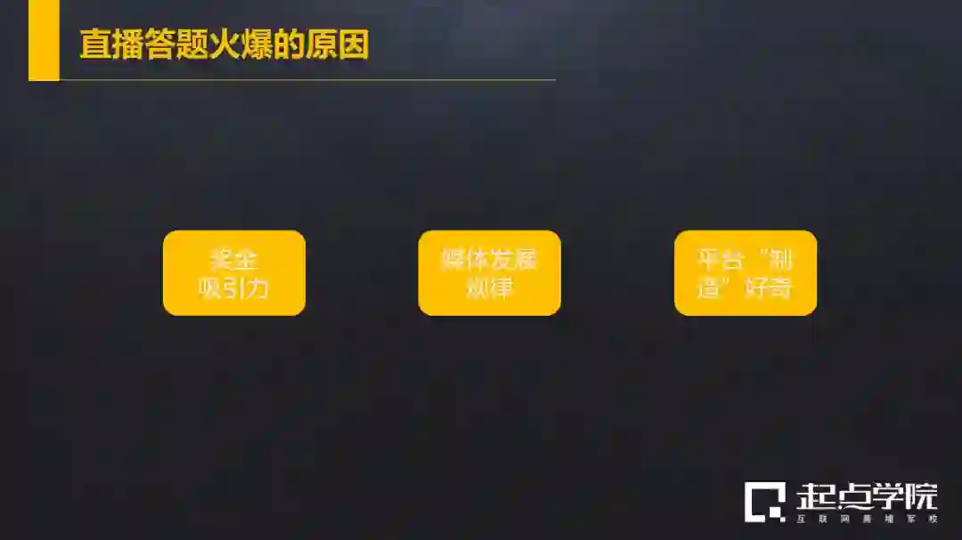 所以第二个原因,其实是媒体发展的必然:新的媒体一定会替代旧媒体的功能,并赋予新的特性——直播答题是电视媒体答题和网络直播互动到这个阶段的产物。