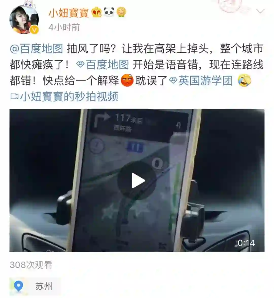 还有人跟着百度地图的语音指示,在原地兜了半小时,红绿灯东西南北跑了三回。