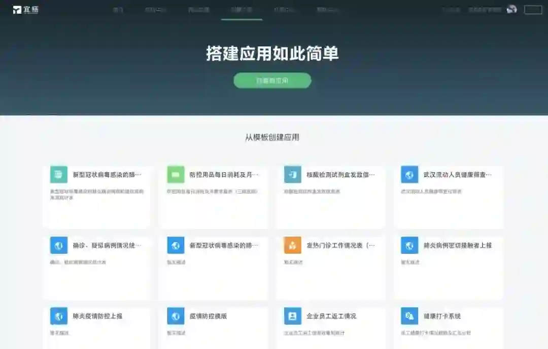 更让人激动的是,目前在宜搭平台上,支持全国各级政府部门、企业单位的疫情相关应用已经超过2000款。
