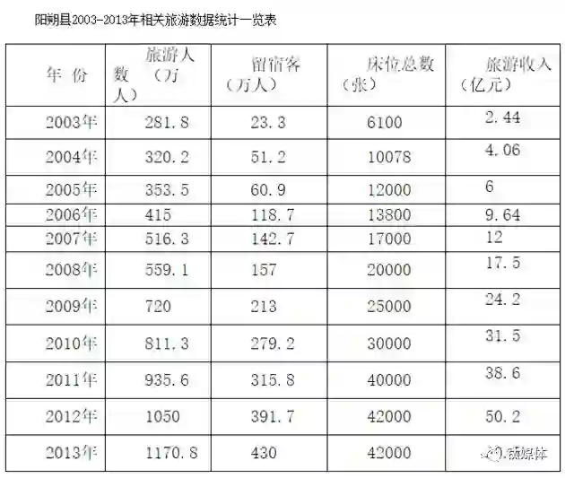阳朔县2003~2013年相关旅游数据统计一览表(数据来源于阳朔县旅游局)