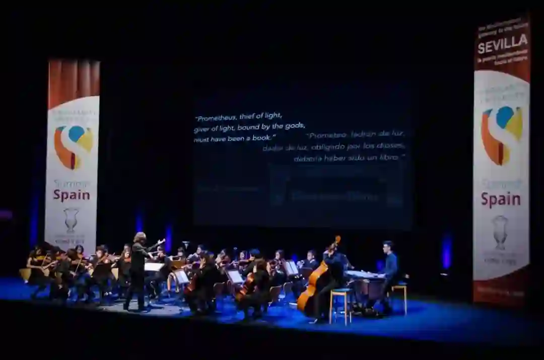 这是奇点大学的校徽和校训——为加速科技变化而准备人性
