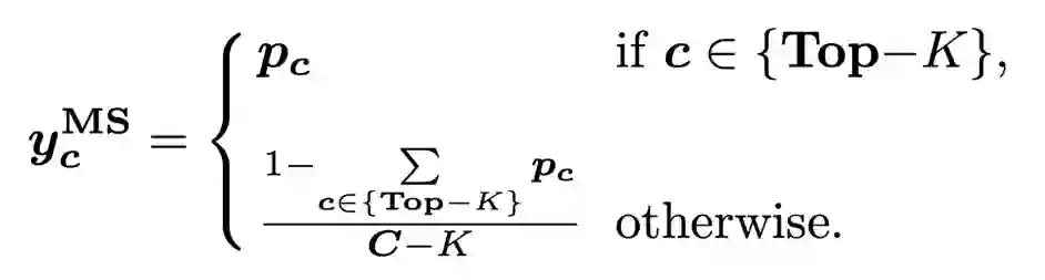 3)边际平滑 (Marginal Smoothing with Top-K)。边际平滑量化策略相比单一预测值保留了更多的边际信息(Top-K)来平滑标签 Y_S: