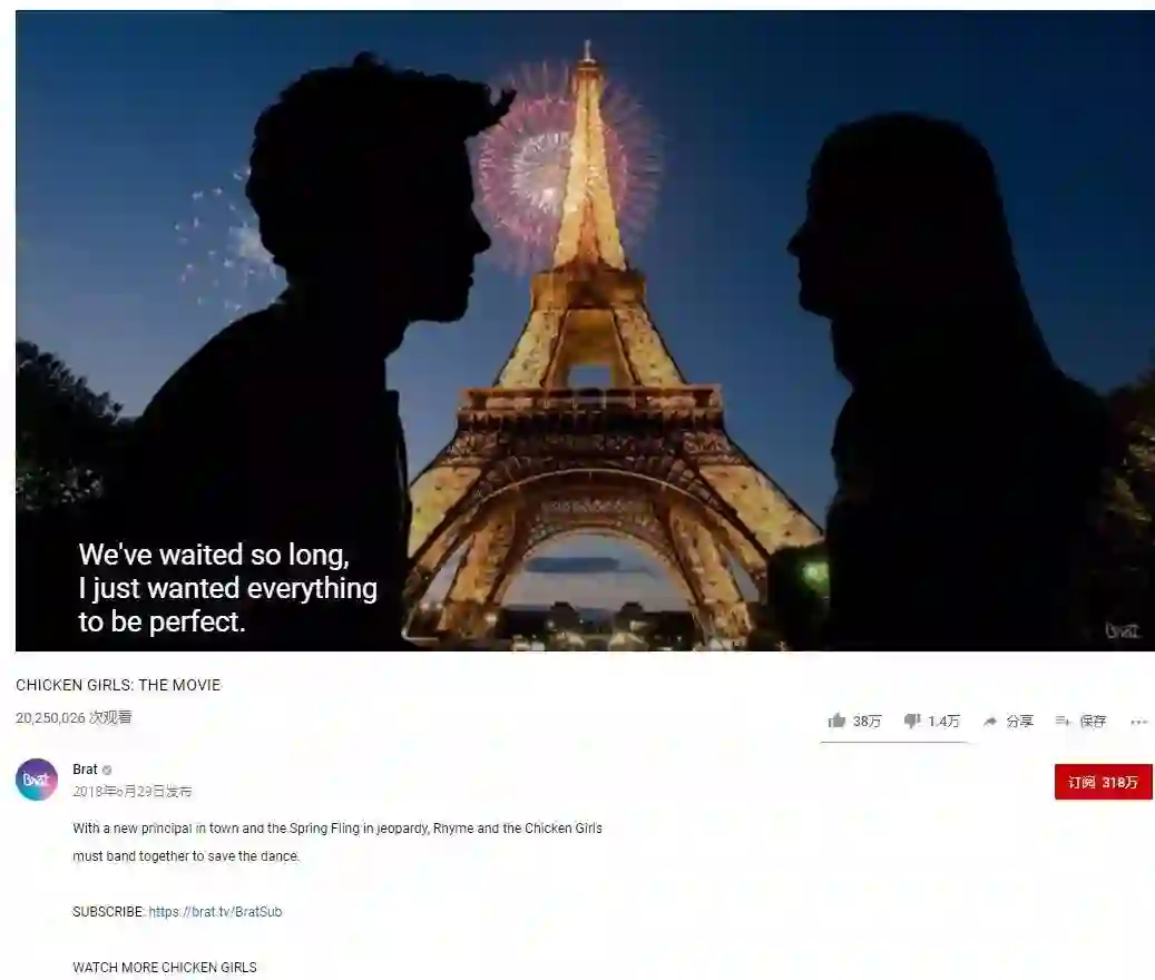 《炸鸡女孩》第二季结束后推出的1小时电影,YouTube播放量超过2000万。从第1季到第4季,主角从初中进入高中,观众见证了他们的成长,也见证了他们的梦想、友情和爱情。第4季的最后集,留言高赞全部是第5季的催更:希望永远不要结束,这也是我们的青春。