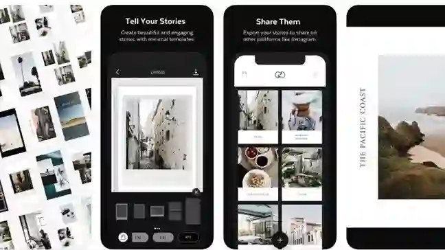 这是一个Instagram故事制作工具,内置精致模板,两三张照片加上一小段文字,简单编辑就能生成一条故事,简洁杂志感和性冷淡风完美契合Instagram用户刚需。