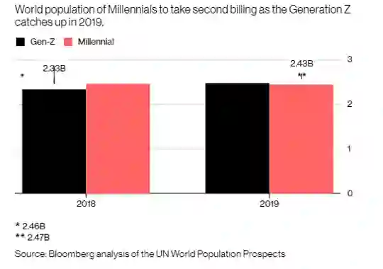 彭博社去年发布了一份报告称,2019年,全球00后人口数将超过千禧一代,达到24.7亿,占世界总人口32%。
