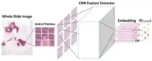 摘要:乳腺癌诊断通常要求通过全切片数字化图像(WSI)对淋巴结癌细胞转移进行准确检测。近期深度卷积神经网络的发展使得医疗影像分析取得了极大成功,尤其是在计算病理组织学方面。由于 WSI 非常大,大部分方法都将整张图像切分成很多小的图像块,再对每个图像块分别进行分类。但是,相邻图像块通常具备空间关联,忽视此类关联可能会导致预测结果不一致。本论文提出一种神经条件随机场(neural conditional random field,NCRF)深度学习框架,来检测 WSI 中的癌细胞转移。NCRF 通过一个直接位于 CNN 特征提取器上方的全连接 CRF,来考虑相邻图像块之间的空间关联。整个深度网络可以使用标准反向传播算法,以最小算力进行端到端的训练。CNN 特征提取器也可以从利用 CRF 考虑空间关联中受益。与不考虑空间关联的基线方法相比,NCRF 框架可获取更高视觉质量的图像块预测概率图。我们还展示了在 Camelyon16 数据集上该方法在癌细胞转移检测方面优于基线方法,在测试集上取得了 0.8096 的平均 FROC 分数。