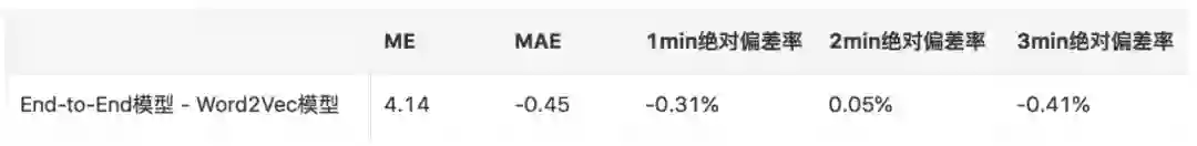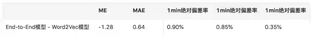 比较大地提升了整体策略的召回率,提升了12.20pp,对于未被上一版本树模型召回的地址,指标有了显著的提升,其中ME下降87.14s,MAE下降38.13s,1min绝对偏差率减小14.01pp,2min绝对偏差率减小18.45pp,3min绝对偏差率减小15.90pp。