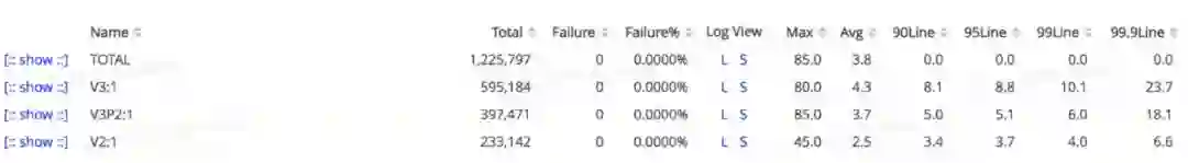 上图为部分版本所对应的性能,平响时间均在5ms内,TP99基本在10ms内
