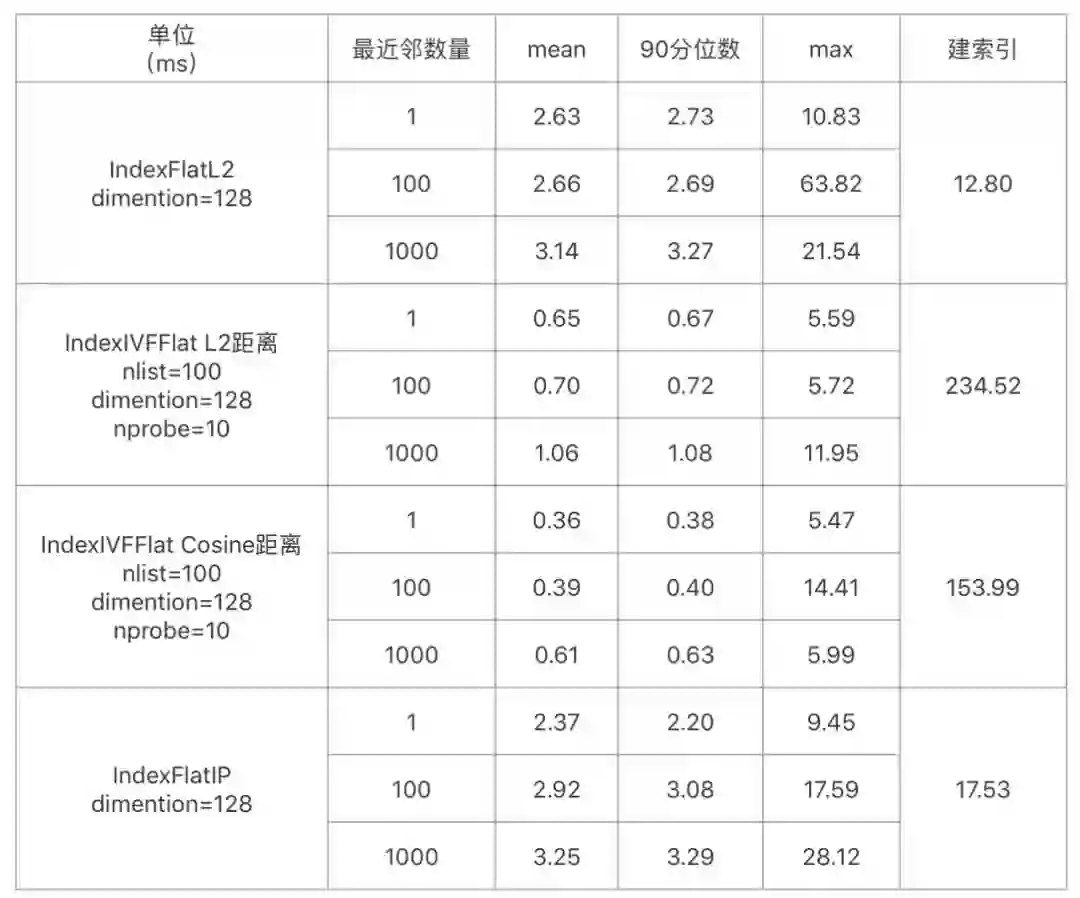 召回候选集数量:8W条向量【由于采用了GPS距离作为距离限制,故召回测试采用8W数量级】。