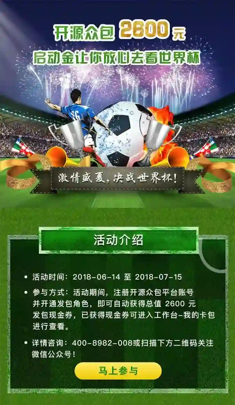 活动期间只要您在开源众包注册,并成功开通发包方身份,马上 2600 元现金红包自动附赠到账号!助力您的项目启动,这次我们不含糊!