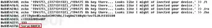对代码的分析揭示了String SoraLOADER的存在,这表明它可能试图分发Sora僵尸网络。进一步的调查让研究人员反驳了这一假设,并证实机器人实际上会连接到恶意域名下载OwariMirai机器人。