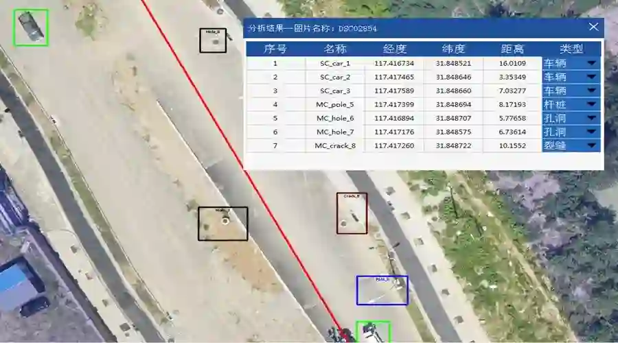 图像分析的异常目标检测,充分的利用了航拍图像中的颜色纹理和形状的特征,将在管线走向两旁指定范围内关注目标,如工程车辆、房屋、裂缝、管线漏油、管线裸露等,通过深度学习算法自动识别和标注,判定异常目标的种类,并提供定位,显示经纬度,检测完毕后可自动生成分析报告,反馈至用户邮箱。