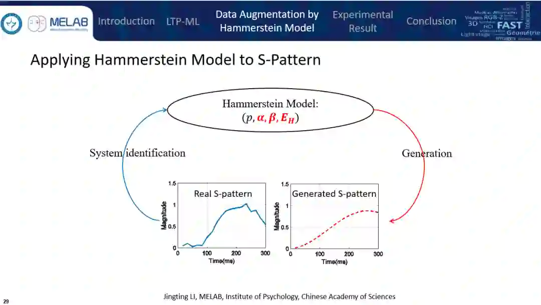 李博士首先简要介绍了目前主流的两种微表情检测思路:传统的帧差异比较法和结合机器学习的检测方法。然后,针对微表情持续时间短、动作强度低以及局部发生的三个特点,李博士提出了结合局部时空特征提取、局部机器学习和晚期融合的微表情检测方法,并采用基于Hammerstein模型进行数据扩增,提升模型分类性能。下图为方法的流程框架: