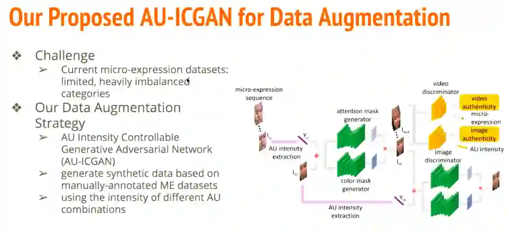 由于微表情的样本数目十分小,限制了结合深度学习的微表情识别研究。针对这一问题,谢洪霞也介绍了基于可控AU强度对抗生成网络(AU-ICGAN)的微表情样本生成方法,并为ICIP2020微表情挑战赛提供了样本。