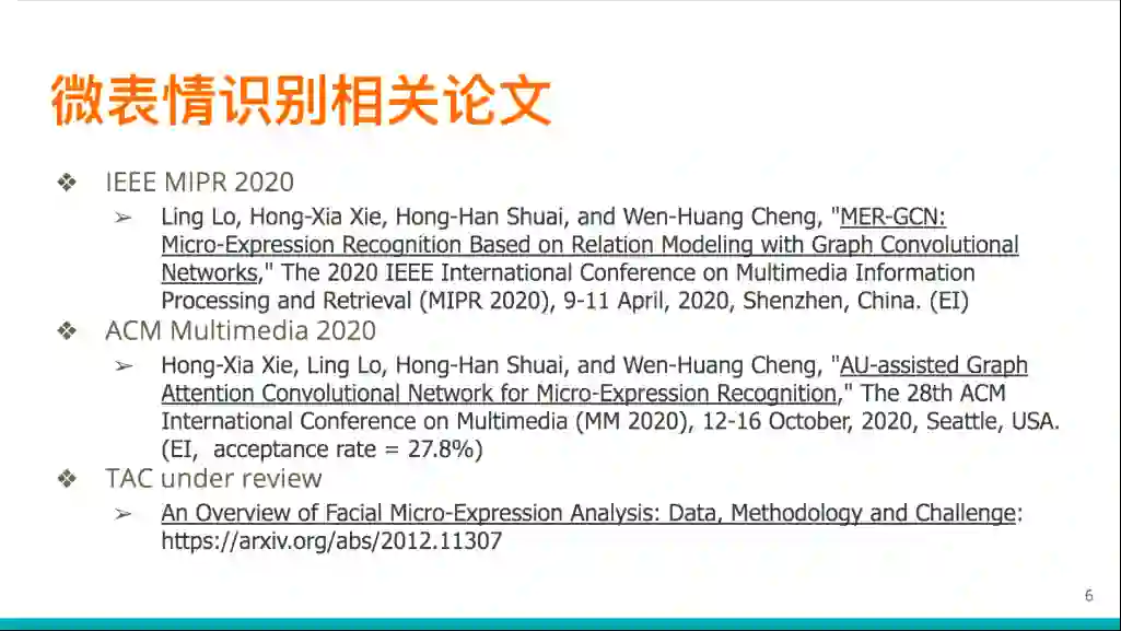微表情是一种短暂的、微弱的、无意识的面部微表情,持续时间往往在0.5s内,能够揭示人类试图隐藏的真实情绪。微表情识别的研究旨在让机器有足够的智能,能够从人脸视频序列中识别人类的真实情绪。然而由于微表情持续时间短、面部肌肉运动强度低,对其进行准确的表征与识别是一项极具挑战性的任务。为了促进心理学领域和计算机视觉领域针对微表情的进一步研究,由中国图象图形学学会(CSIG)主办、CSIG机器视觉专业委员会承办,中国科学院心理研究所的王甦菁博士组织了一系列云上微表情的学术活动。
