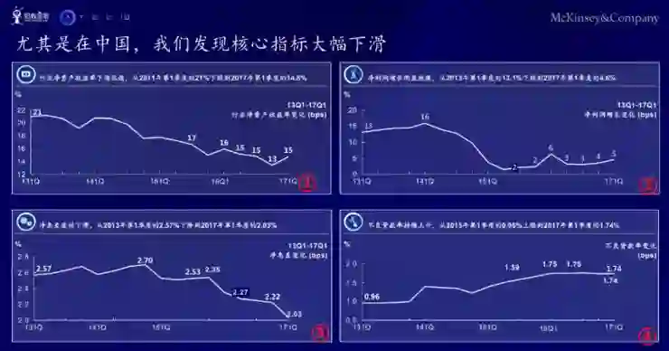 银行业并不是非常以消费者为中心。该图右下角有中国,可以看到数字化、智能手机的数据化;在右上的象限,会看到利润压缩,银行总体来说收入可能会降低;但在左下角,压力主要是来自外部,比如你的客户关系受到损失。
