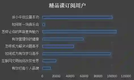 以某一主题为内容的精品课以短周期低价格切入,在得到上也取得很大收效,目前得到上开设的竞品课程有8门,总订阅用户数达到442844人。