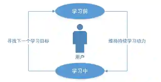 从上图用户学习体验上进行分析,用户在使用产品过程中主要处于两个阶段:学习前和学习中。下面将具体结合用户在每个状态下最关系的问题以及得到的功能设计进行解析。