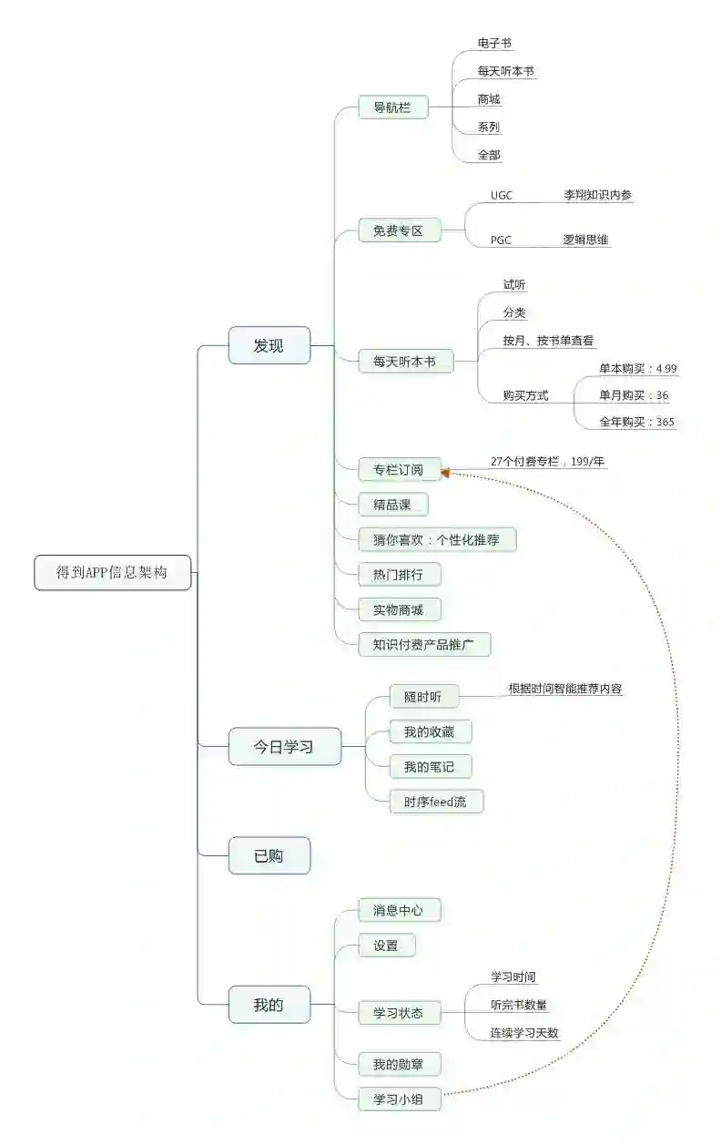 先来看一看得到APP的信息架构: