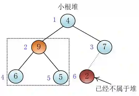 我可以把堆顶的元素和堆的最后一个元素交换,然后逻辑上删除最后一个元素