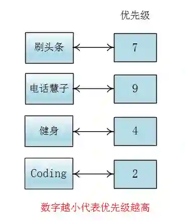 我首先会把优先级和事情一一对应起来,优先级用整数来表示