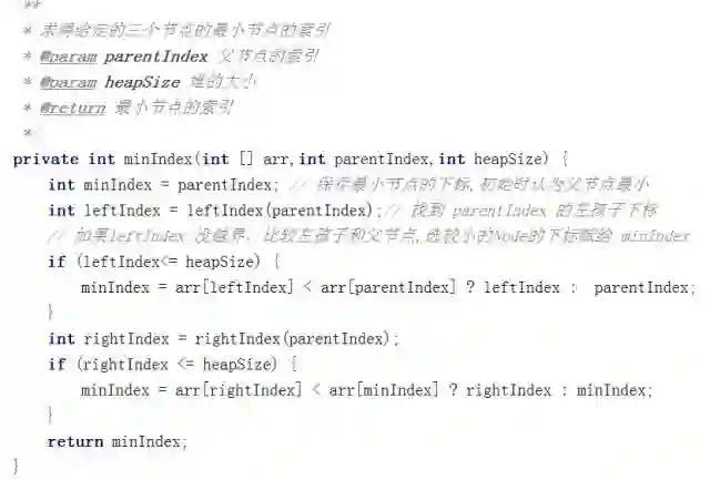 我用一个变量存储值最小节点的下标,先让左孩子和父节点比,将其中值小的节点的下标存入minIndex,然后让右孩子与刚才选出最小值的节点比,更新minIndex