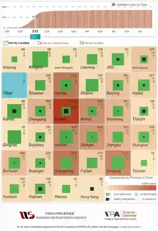 图 2:《疫情方寸间》在疫情早期的截图。通过方块和颜色等视觉通道的合理搭配刻画新冠疫情信息,为大众提供一个更充满希望的预期。