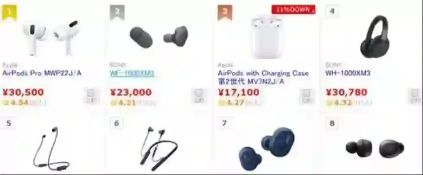另据日本电子商务商品信息网站 KAKAKU 对本土市场的统计,霸榜耳机类别最高销量前八名的产品全是无线耳机。