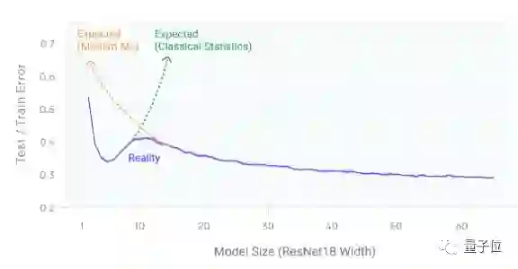 在此之前,大家普遍认为参数太少的模型泛化能力差——因为欠拟合;参数太多的模型泛化能力也差——因为过拟合。