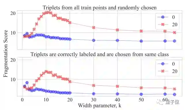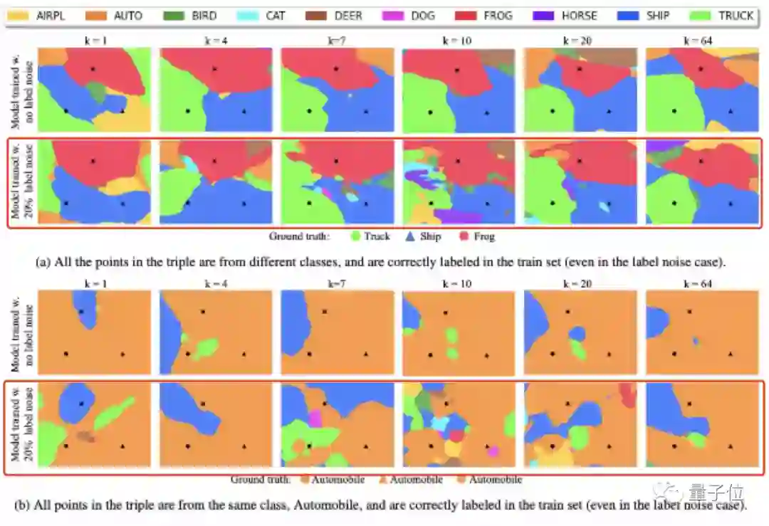 训练出的两组模型,其中一组使用无噪声标签(label noise)的训练集,另一组则带有20%的噪声标签。