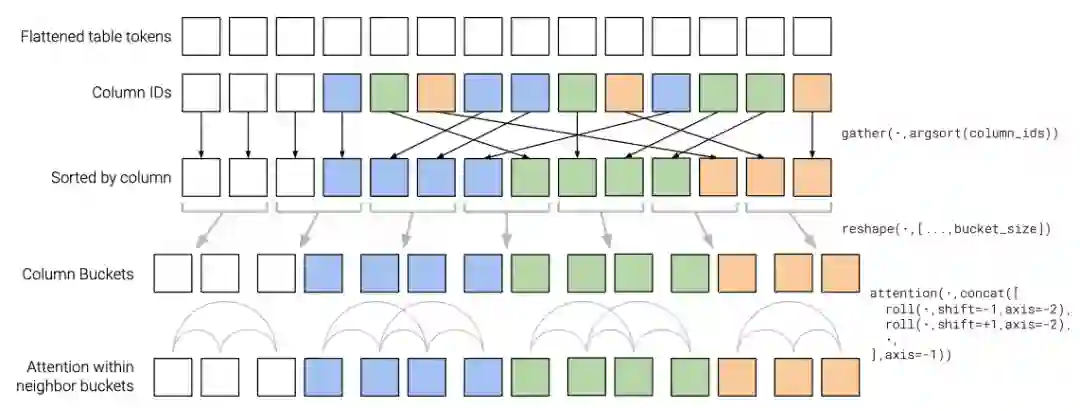 有了稀疏注意力机制之后,MATE又是如何处理有着行和列结构的表格型数据的呢?论文中的做法十分简单: