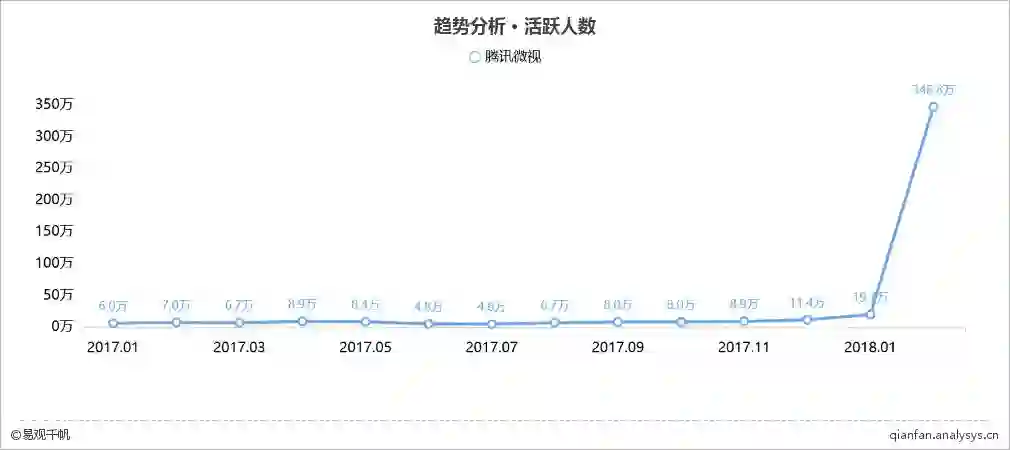 2017年1月-2018年2月腾讯微视APP月活趋势