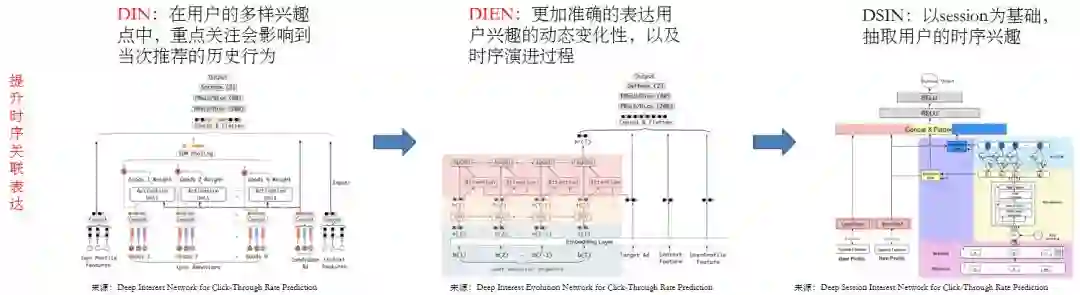在前文中,我们也提及了时序关联表达的问题。对此,我们曾经采用过针对点击率的 DIN(Deep Interest Network)。